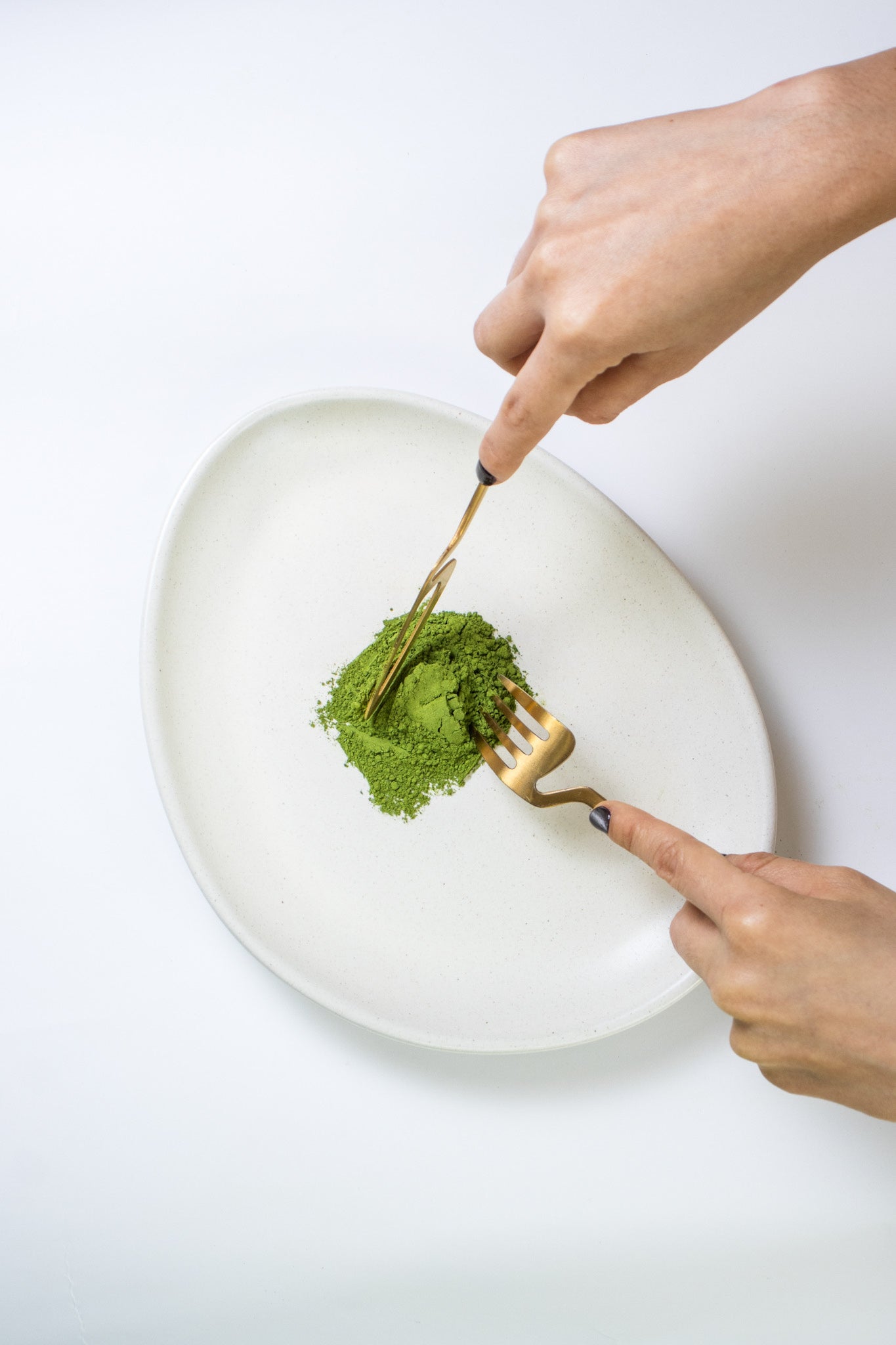 Luego, las hojas se secan y se eliminan los tallos y las venas. Las hojas secas se trituran en un molino de piedra en forma de disco para producir el polvo fino y brillante que es el Matcha.